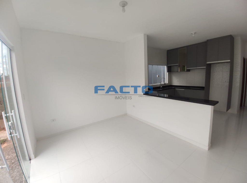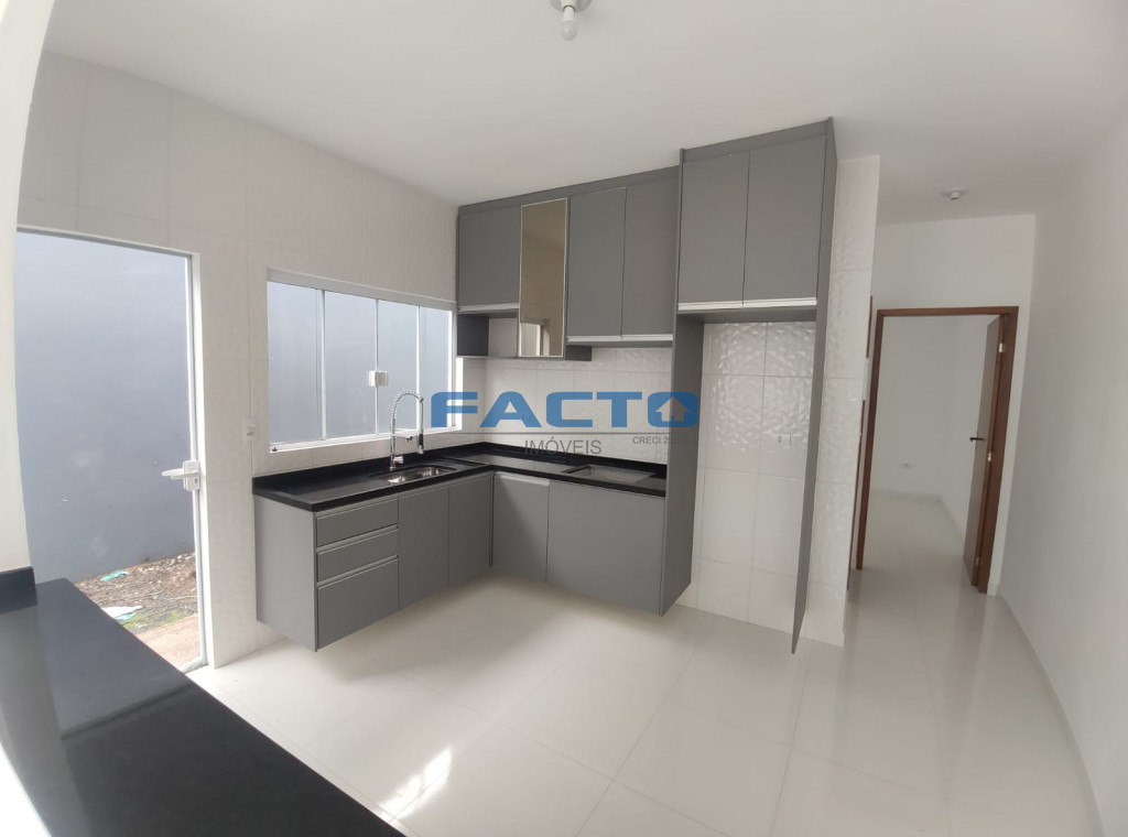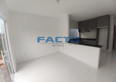Imóvel novo, com um 1 dormitório, sala/cozinha com armário planejado, banheiro, lavanderia, vaga de garagem e quintal.