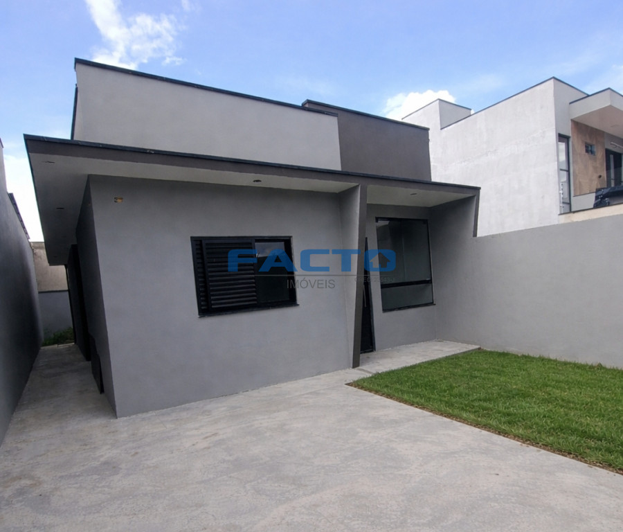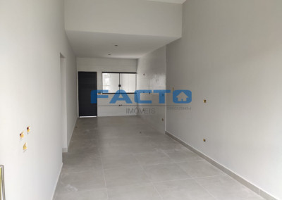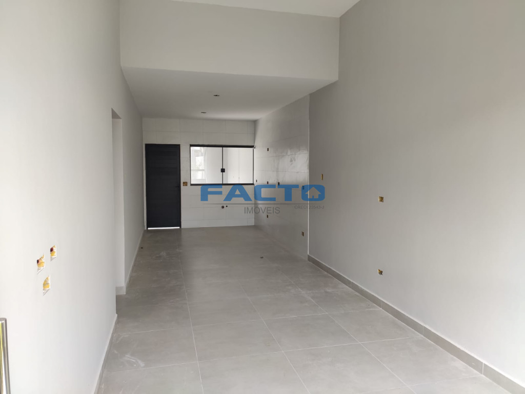 Casa nova com 2 dormitórios (sendo 1 suíte) além de um banheiro social. Possui uma sala ampla com pé direito duplo, proporcionando maior iluminação natural e sensação de espaço, integrada a sala de jantar e a cozinha em conceito aberto.